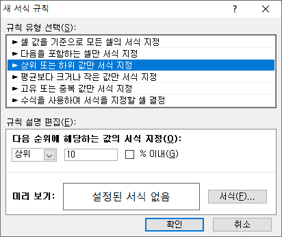 상위 또는 하위 값만 서식 지정